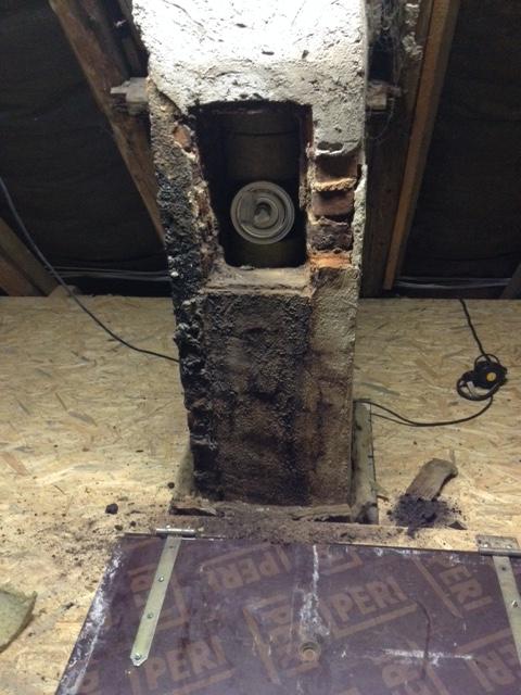 Durch den Einzug von Edelstahlrohren wird der Schaden eingegrenzt und der Schornstein kann wieder betrieben werden.