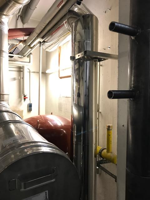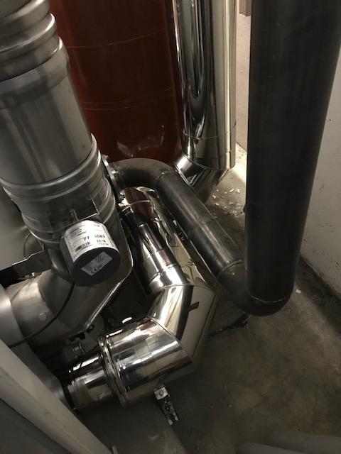 Zuerst wurde der Schornstein mit der zentralen Heizstätte des Wohnhauses verbunden, welche sich im Keller befand.