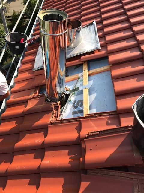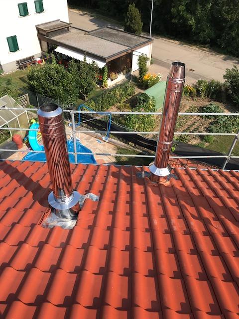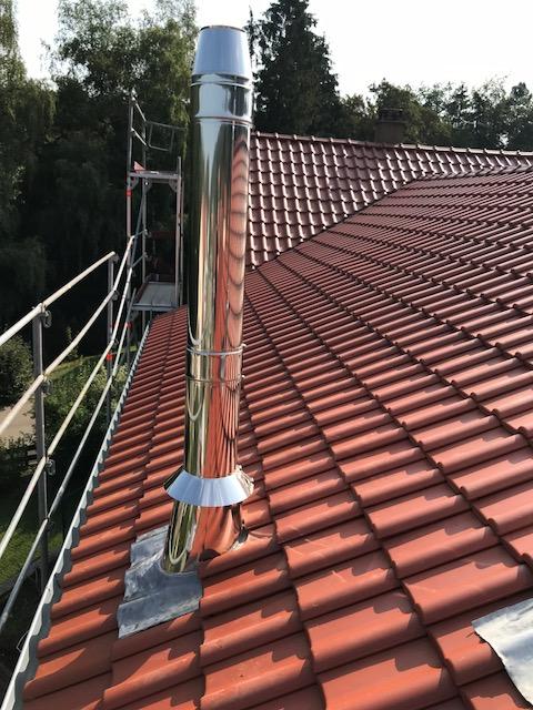 Ein Edelstahlschornstein wurde mit der Regelfeuerstätte des Wohnhauses verbunden, ein anderer bekam einen Ofenanschluss.