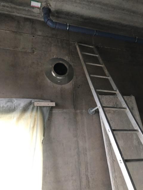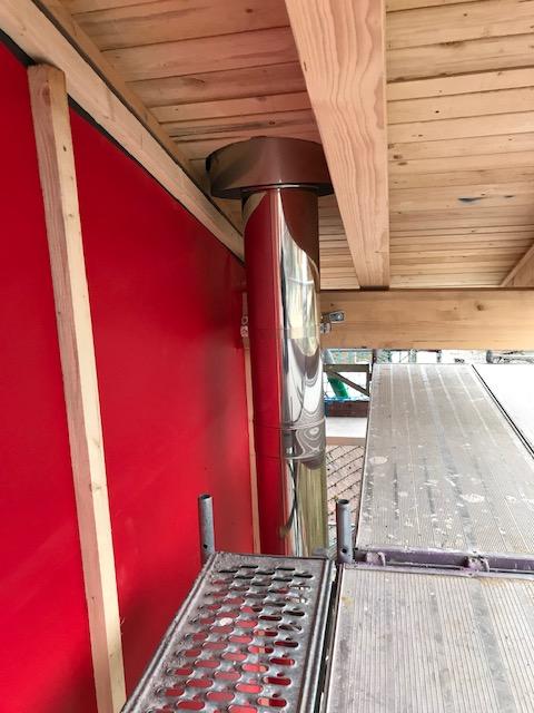 Der Schornstein wurde mit Dachdurchführung gebaut, da die Dachkante weit herausragte.