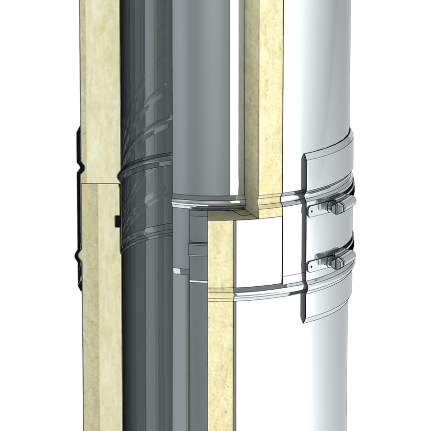 Der doppelwandige Systemschornstein DW-RBB ist die kondensatsäurebeständige Variante unseres Klassikers DW-RFU- Aufgrund seines Innenrohres aus hochlegiertem Edelstahl 1.4539 eignet er sich auch für die besonderen Anforderungen, die Biomassefeuerungen wie Hackschnitzel, Scheitholz und Holzpellets nach DIN 51731 im kondensierenden Bereich an eine Abgasanlage stellen. Selbst nach einem Rußbrand kann der feuchte Betrieb ohne Probleme fortgesetzt werden.