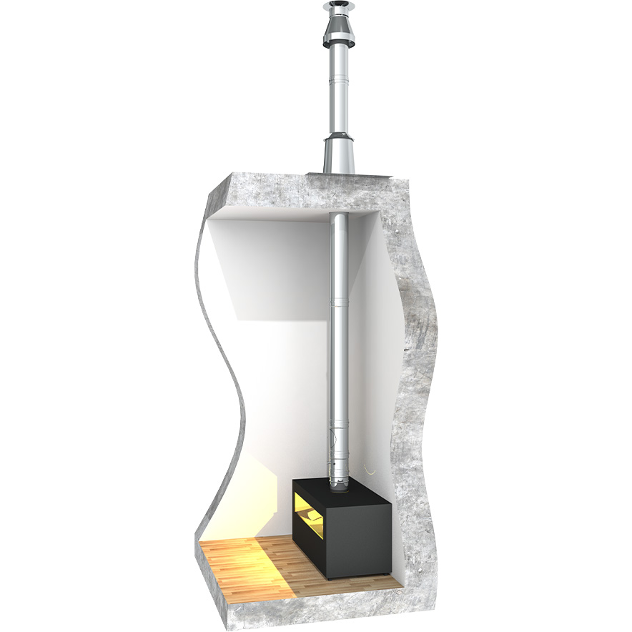Die konzentrische Systemabgasleitung DUO-GAS wurde speziell für die besonderen Anforderungen von dekorativen Gaskaminen bzw. Gaskaminöfen entwickelt, die in raumluftunabhängiger Betriebsweise betrieben werden. Die Zuluftführung erfolgt über den Ringspalt zwischen dem inneren und dem äußeren Edelstahlrohr, eine Spezialdichtung im Außenmantel verhindert jeglichen Austausch zwischen Verbrennungs- und Raumluft.