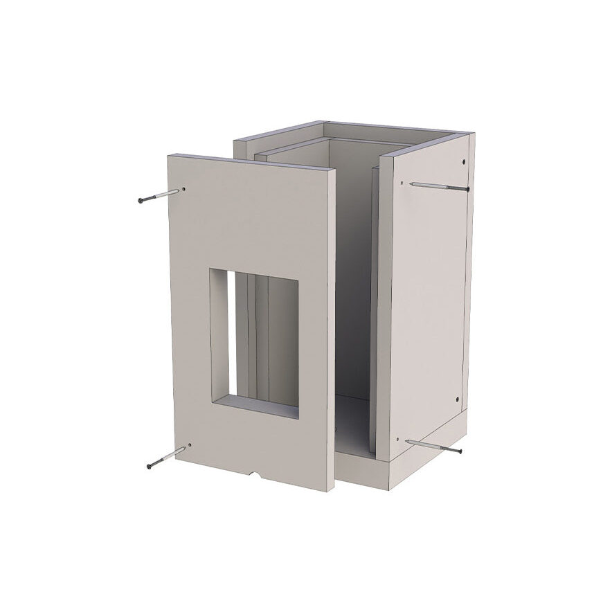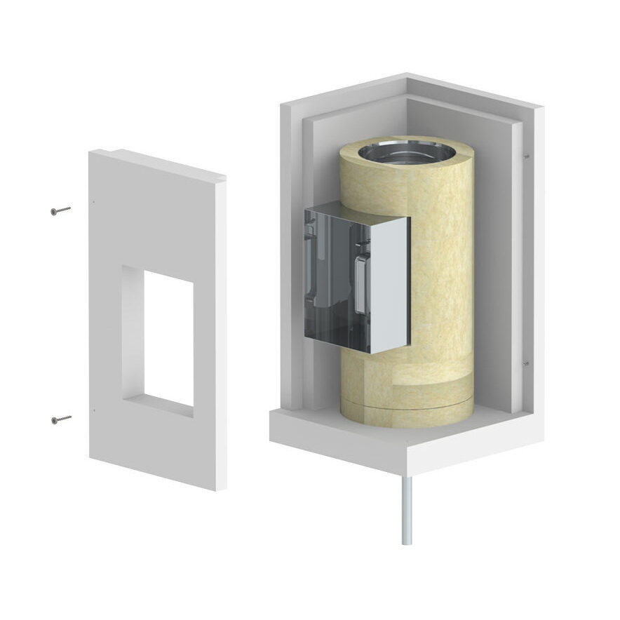 Alternativ kann der MULTI90-RFU auch als Montageschacht für die Aufnahme von CE-zertifizierten Innenrohren oder bauaufsichtlich zugelassenen Innenrohren vom System RBB und min. 25 mm Dämmschalen verwendet werden.