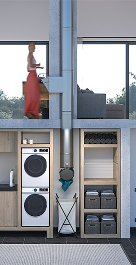 Ob freistehendes Design-Einwurfterminal oder eine in die Wand integrierte Einwurftüre, mit oder ohne Einwurftüre im Zwischengeschoss, Auswurfrohr mit Verschlussdeckel oder gebördeltes Endrohr: je nach baulichen Gegebenheiten und persönlichen Vorlieben stehen verschiedene Lösungen zur Verfügung. Besonderes Highlight unseres Wäscheabwurf-Programms ist das Auswurfrohrmit Verschlussdeckel. Einmal exakt eingestellt, sorgt ein schraubbares Gegengewicht dafür, dass der Deckel selbst bei minimalem Wäschegewicht zuverlässig öffnet und nach erfolgtem Wäscheauswurf wieder selbständig schließt.